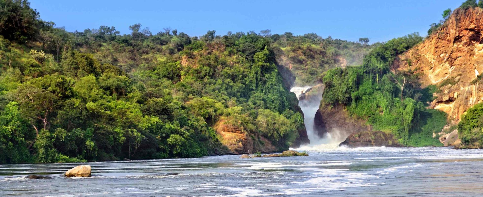 Bli med på en klassisk cruiseopplevelse på Nilen om bord i en dobbeltdekkerbåt i Murchison Falls nasjonalpark! Du seiler oppover elven i to timer (og én time tilbake), mens du speider etter flodhester og krokodiller i vannet, og andre dyr som trekker ned til bredden. Til slutt kommer du til foten av de imponerende Murchison Falls, som stuper 43 meter ned. Her kan du kjenne vannspruten i ansiktet mens du ser fossen bruse nedover. Vannet er så kraftig at båten ikke kan komme helt nær, men tro oss – synet er uansett spektakulært!