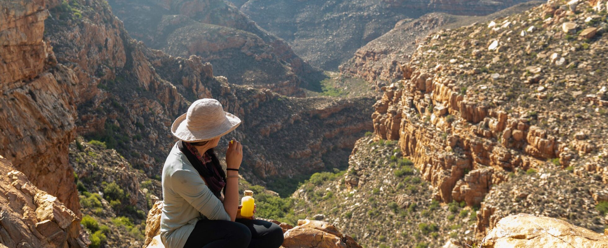 Legg ut på en avslappet solnedgangsvandring til den imponerende Rietrivier Canyon-utsiktspunktet, som starter fra Mount Ceder Guest House—bare husk å bestille på forhånd. Denne enkle, familievennlige turen tar 30 minutter hver vei og belønner deg med storslåtte utsikter over Cederberg mens solen dykker bak fjellene. Nyt en kald drikke og en lett matbit mens du absorberer den gyldne timens glød. Når solen går ned, bli igjen for noen av de beste stjernekikkingene Sør-Afrika har å tilby. Den komplette opplevelsen, inkludert solnedgangsdrinker og litt stjernekikking, kan strekke seg til rundt 3 timer, perfekt tidsbestemt og helt uforglemmelig.