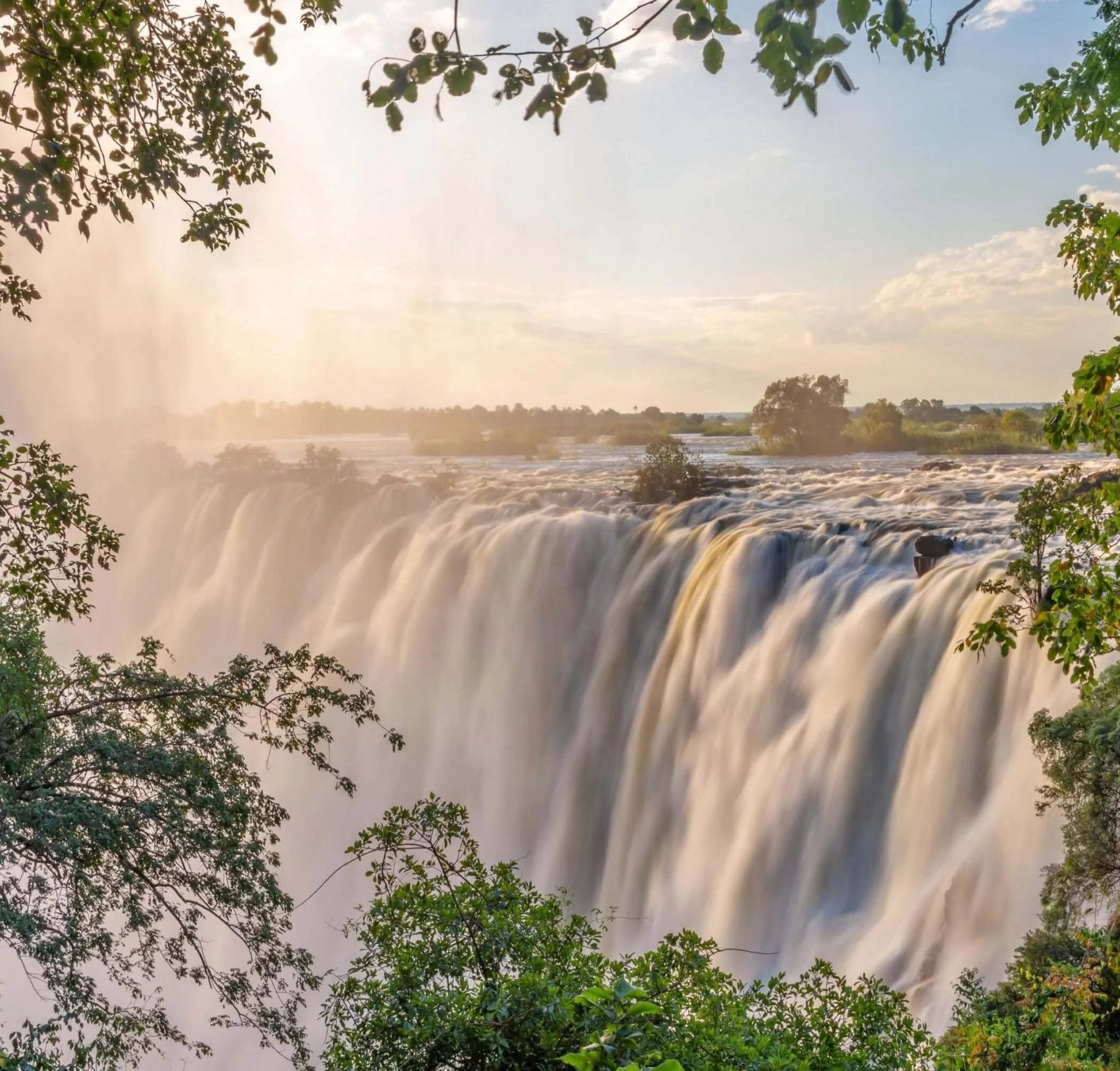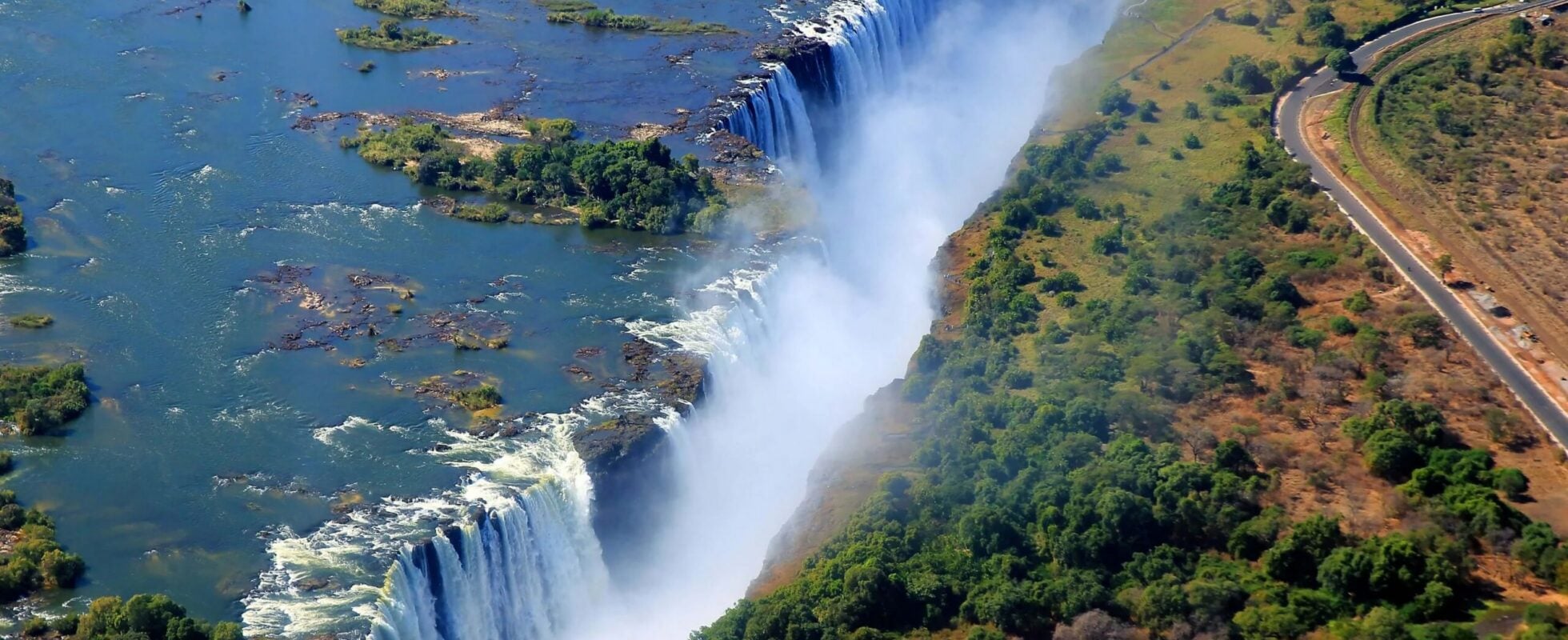 Victoria Falls er et av verdens sju naturlige underverker. Her stuper Zambezielven 108 meter ned i en kløft og danner verdens største sammenhengende fossefall – et skue som lokalt kalles Mosi-oa-Tunya («røyken som tordner»). Fossen ligger på grensen mellom Zambia og Zimbabwe og byr på storslåtte utsiktspunkter, gåturer i den frodige regnskogen, uforglemmelige safariturer og adrenalinfylte opplevelser på Zambezielven.
