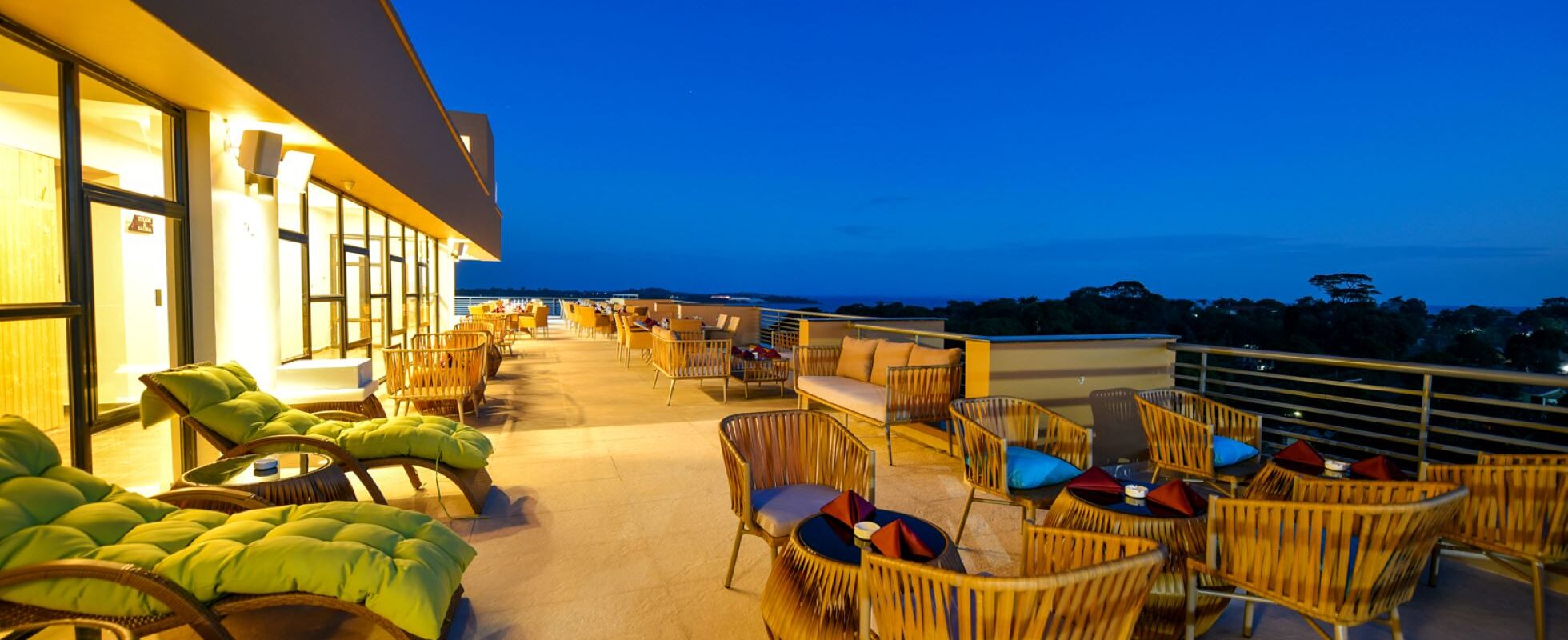 K Hotels er et moderne luksushotell i Entebbe med fantastisk utsikt over Lake Victoria, og tilbyr 48 rom fordelt over flere etasjer. Alle rommene er romslige, med eget bad og walk-in-dusj, moderne interiør, komfortable senger, private balkonger og høyhastighets WiFi. Gjestene kan slappe av i loungen, unne seg litt egenpleie i spaet eller spise enkel, men velsmakende mat i restauranten. Og det beste av alt? Baren og svømmebassenget ligger på taket i 6. etasje, med spektakulær utsikt over byen og innsjøen mens du nyter en cocktail eller tar en dukkert!