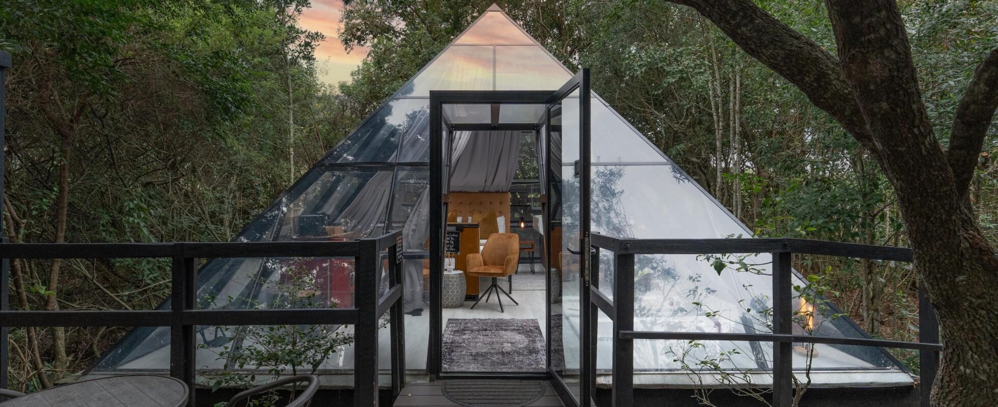 Kupolene på Misty Mountain Reserve ligger over den dramatiske Tsitsikamma-kysten (på grunn av de forrevne, ruvende klippene som stuper ned i havet), og tilbyr en luksuriøs, off-grid-ferie med wow-faktor. Kupolene er designet for privatliv og komfort, og de tilbyr en fantastisk utsikt over omgivelsene. Det er en king- eller queen-size-seng, klimaanlegg, Wi-Fi og til og med en gassgrill på den private terrassen. Rommene har solide, gjennomsiktige kuber som er perfekte for å nyte utsikten, samt miljøvennlige bekvemmeligheter, kjøkkenkrok, mikrobølgeovn, kjøleskap og et utvalg av kaffe og te. Badene har utendørs dusj, og restauranten serverer alle måltider.
